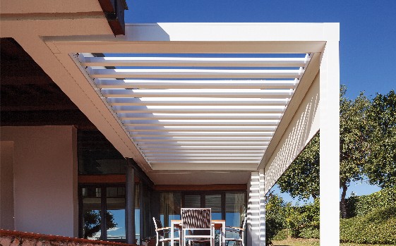 Elegante, essenziale e pulita. La pergola bioclimatica con lame orientabili da zero a 140 ° pensata per qualsiasi contesto architettonico. Opera è personalizzabile dalle finiture agli accessori, per vivere open air tutto l'anno.