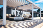 La vasta gamma di bioclimatiche e biocoperture offre soluzioni in alluminio e acciaio con copertura fissa o mobile che garantisce la protezione da sole, vento, pioggia, grandine e neve con possibilita' di installare chiusure perimetrali come tende Antivento, tende Antipioggia, tende Parasole, pannelli frangisole o vetrate per creare una veranda.