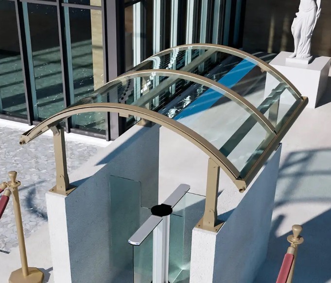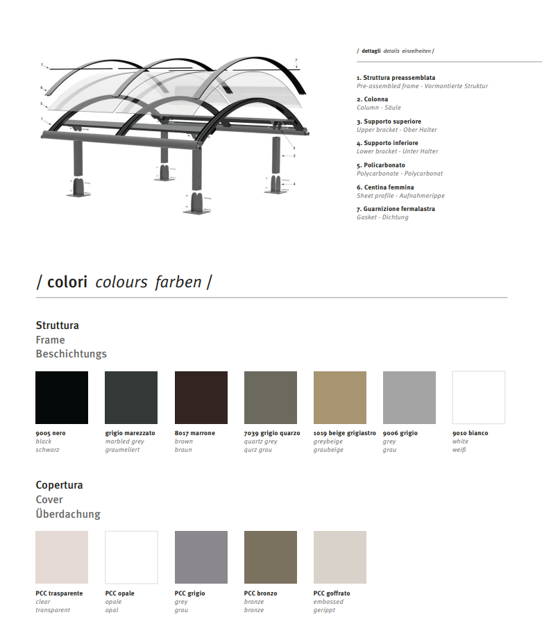 in alluminio e policarbonato compatto, consente di riparare gli ospiti, i