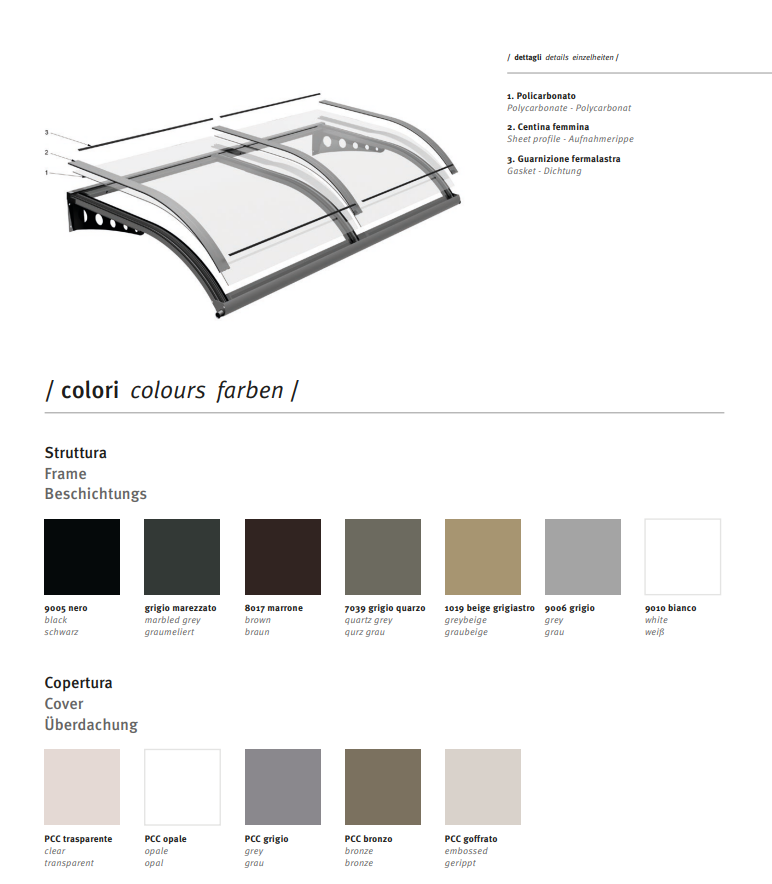 d’installazione permettendo l’ancoraggio della tettoia in alluminio anche in