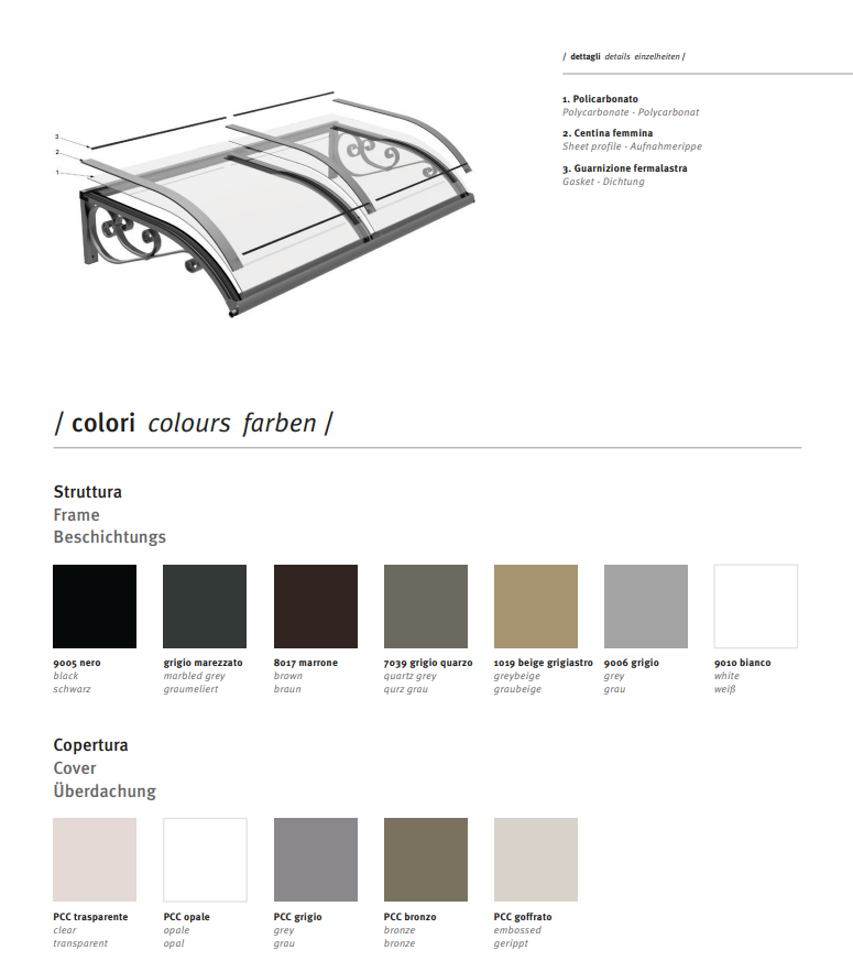 La pensilina Ricciolo è realizzata con profili in lega di