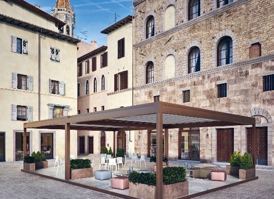 La voglia di creare un ambiente raffinato, ma allo stesso tempo essenziale e funzionale. Rialto è la pergola in alluminio con copertura ad impacchettamento, dalla forma pulita e dal profilo portante minimale, personalizzabile dalle finiture agli accessori.
