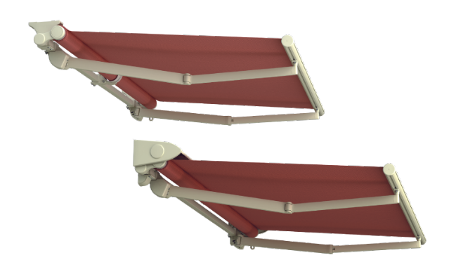 estensione. A richiesta disponibilità tenda a bracci senza barra di rinforzo realizzabile in misura limitata.