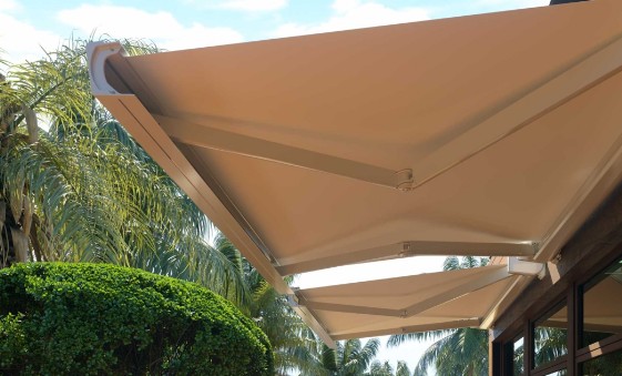 Tenda da sole con cassonetto a chiusura integrale con bracci di estensione in alluminio con catena triplex in acciaio inox. Possibilità di regolazione micrometrica dell’inclinazione dei singoli bracci al momento dell’installazione. Movimentazione bracci su bronzine autolubrificanti.