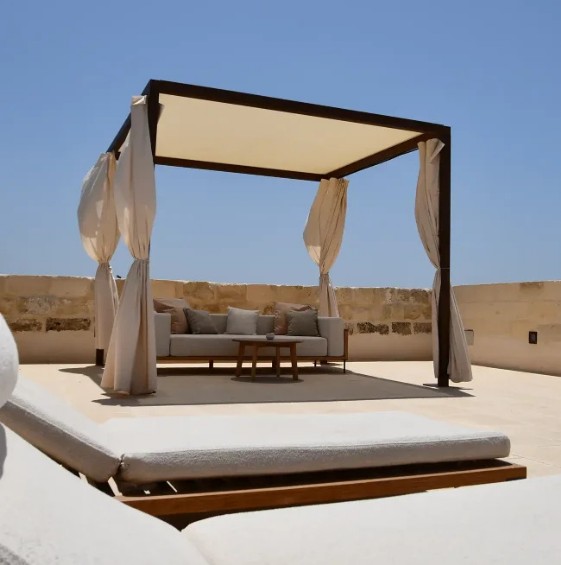 La pergola ombreggiante Beach Zero è caratterizzata da una copertura in tessuto microforato che le conferisce leggerezza e un design essenziale. Grazie all’innovativo sistema di tensionamento il PVC microforato è in perfetta tensione sulla struttura, garantendo così la massima linearità estetica.